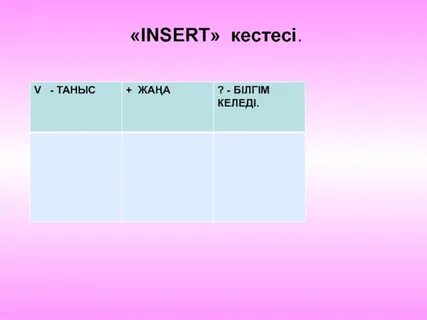 ТЖ. /Топтық жұмыс/ (15 мин) 2-тапсырма. "INSERT" әдісі – мәтінді оқып, таныс ақпаратты, жаңа ақпаратты және түсініксіз жерлерді белгілеп, талдау. Жасөспірімдік кезең – адамның өміріндегі ең маңызды әрі қарқынды өзгерістерге толы кезеңдердің бірі. Бұл жас шамамен 10-19 жас аралығын қамтиды және осы уақытта ағзада дене бітімі, жыныстық жетілу, эндокриндік және жүйке жүйелерінде түбегейлі өзгерістер жүреді. Бұл өзгерістер адам ағзасының ересек өмірге бейімделуіне бағытталған. Жасөспірімдік кезеңде бойдың, салмақтың, бұлшықет массасының және ішкі ағзалардың қарқынды дамуы жүреді. Жасөспірімдік кезең – ағзада көптеген физиологиялық өзгерістер орын алатын, әрі адамның болашақ денсаулығы мен мінез-құлқының негізі қаланатын уақыт. Бұл кезеңде жасөспірімдердің физикалық және психологиялық даму ерекшеліктерін түсіну, оларға дұрыс бағыт-бағдар беру өте маңызды. Дұрыс тамақтану, белсенді өмір салты, ұйқы режимін сақтау және психологиялық қолдау – жасөспірімнің салауатты дамуы үшін қажет басты факторлар. Жасөспірімдердің физиологиялық дамуының дұрыс жүруі үшін келесі факторларды ескеру қажет: