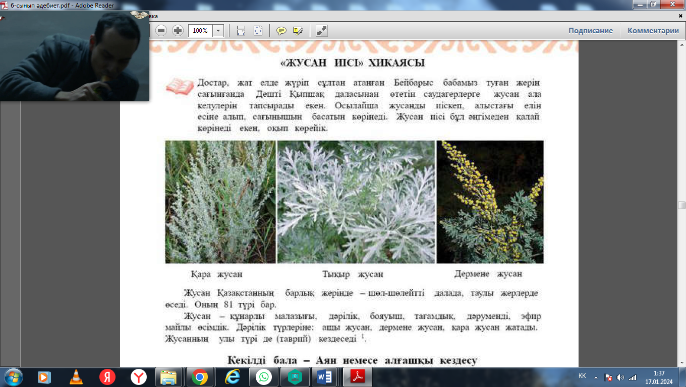 Мынау жусан түрлері. Бұл әңгімеде жусан иісі қалай көрінеді, қалай ойлайсыңдар? Балалар өз болжамдарын айтады. |