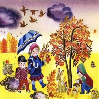 Кірпі: -Рахмет, балалар сендер өте ақылды екенсіңдер,мен енді өзімнің достарыма барайын,сендерге арнап мына алмаларды ала келдім. (алманың артындағы сөзді оқып,балалардың мойынына ілу)