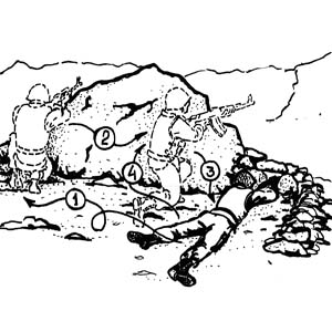 Қолдану 1. Жергілікті елді мекенді қарау. 2. Орманды қарау. 3. Өзенді қарау. 4. Терең жыраны қарау 5. Тауларда шолу жасау 6. Түнде шолу жасау ерекшеліктері Шолушылардың қозғалыс барысындағы, сондай-ақ жергілікті жерді және ондағы заттарды қарау кезіндегі әрекетін көрсету. |
