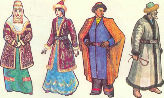 Қазақ салтында ер жігіт егеске түсерде, соғысқа барарда киімдердің ең жақсы, таңдаулысын киген. Ішкі киімдері: көйлек, дамбал, желетке, кәзекей; сырт киімдерге: шапан, күпі, кеудеше, тон, шидем; сулық киімдерге: шекпен, қаптал шапан, кебенек кенеп, сырттық жатады (қазақ Киім). Киім мәуітіден, жүн және жібек матадан, киізден, аң терісінен тігіледі. Қазақтар құланның, ақбөкеннің, жолбарыстың, жанаттың, бұлғынның, сусардың, ақ тышқанның терілерін ерекше қымбат бағалайды. Бұл аңдардың терілерінен тондар тігілді. Астарына құнды аң терісі салынған тон – ішік деп аталды. Осы аң терісіне сәйкес бұлғын ішік, жанат ішік, қасқыр ішік, күзен ішік болып бөлінеді. Ішіктердің сыртын шұға, мәуіті, үш топ барқыт, атлас, көк берен, манат, қырмызы, торғын, ләмбек сияқты бағалы ширақы маталармен тыстаған. Ішіктер кейде әдепті, оқалы, шет-шеті жұрындалған қайырма жағалы болып тігілген.