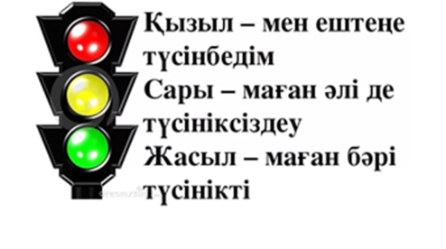 Рефлексия. «Бағдаршам» әдісі.Оқушылар өздеріне берілген стикерлерге бүгінгі сабақтан не түсінгендерін жазады және оны тиісінше тақтада тұрған бағдаршамның бір түсіне жабыстырады.