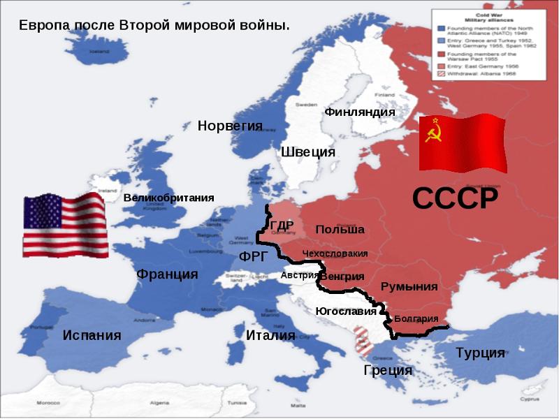 9.3.2.3 характеризовать противостояние военно-политических блоков НАТО и ОВД, опираясь на знание исторических фактов и карты;