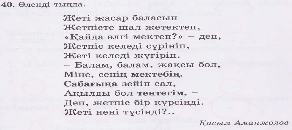 мәтін мазмұны бойынша сұрақтар құрастырады.