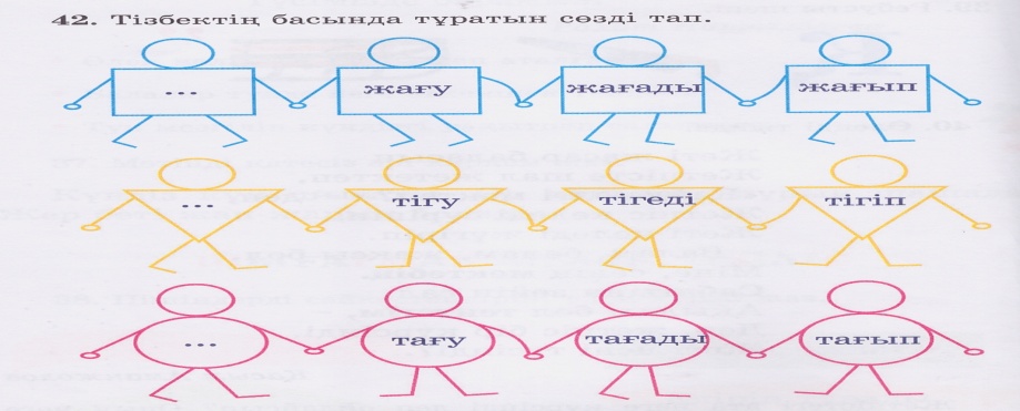 Оқушыларға сөздер тізбегі беріледі. Түбірлес сөздерді табады.