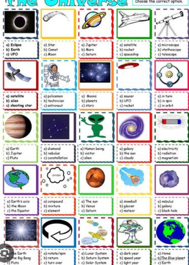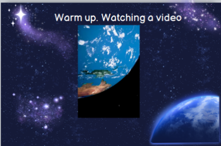 The teacher introduce with the assessment lists Cheeking home work Pupils’ home task to find out the definition of these words. Words Solar system Galaxy Space Moon Planet Space craft Universe Gravity Asteroid Satellite Star Cosmodrome The teacher asks learners about their points \feedback\ Warm-up. Watching a video What do you think? What is the theme of our lesson?