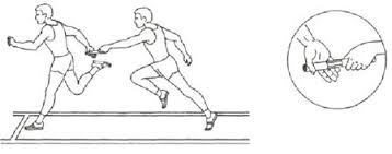 келесі қатысушыға эстафетаны береді. Бірінші болып аяқтаған команда