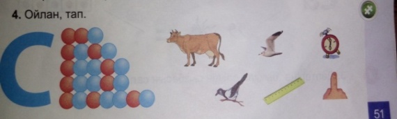Қ.Б.«Бағдаршам» әдісі Сергіту сәті «Он сұрақ» ойыны Ойын ережесі (Бір оқушыны таңдап алып және оның маңдайына сиыр бейнесін жапсырады. Отырған оқушы сыныпқа маңдайындағы затты анықтау үшін 10 сұрақ қояды. Қалған оқушылар ИӘ, не ЖОҚ деп жауап береді). 2. Дәптермен жұмыс. «Таза тақта» әдісі Тақтаға ілінген тапсырмаларды орындайды. С с Су сау сан су А су асау сана суат Дескриптор: 1.С әрпін жазды. 2.Сөздерді көшіріп жазды. 3. С дыбысынан басталатын сөздерді ауада жазды. 4 Каллиграфиялық нормаларды сақтады. Қ.Б.» Басбармақ» арқылы өз ара бағалау. |