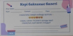 Оқушылардың сабаққа байланысты ойларын білу мақсатында "Кері байланыс билеті" таратылады. |