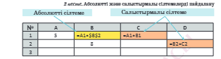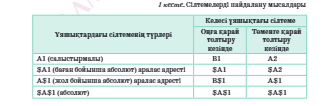 8.2.2.1 электронды кестеде есептерді шешу үшін мәліметтердің әр түрлі типі мен форматын қолдану |
