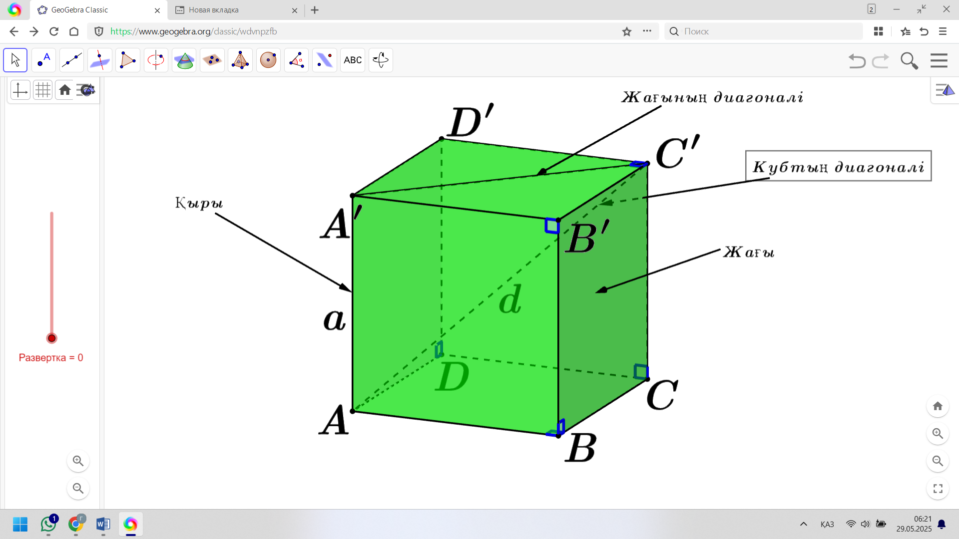 Шешуі: 1-қадам. Кубтың диагоналы мен қырының байланысы.