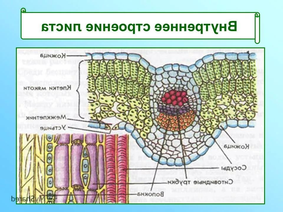 7.1.2.1. Описывать внутреннее строение листа и объяснить взаимосвязь между строением и функции |