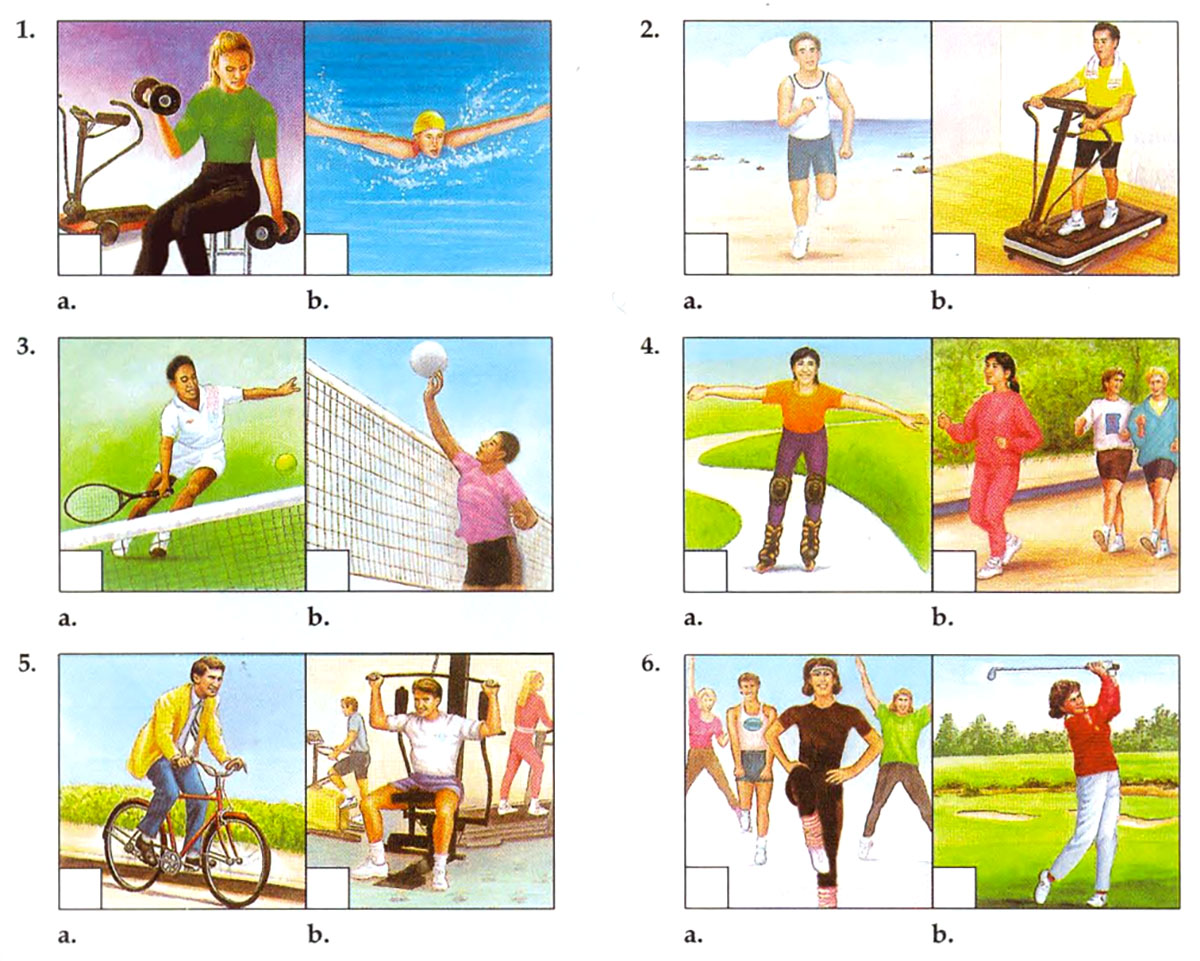 Task 1. People are comparing different kinds of exercise. Which kind of exercise does each person prefer now? Listen and check the correct answer.