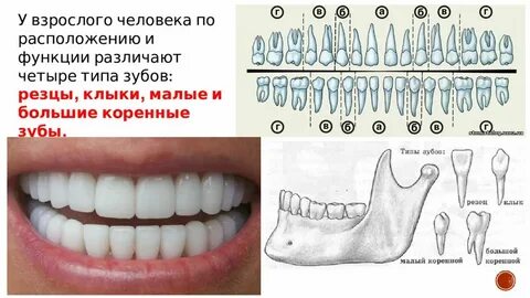 Тіс қатарының ортасында тағамды тістеуге және жыртуға бейімделген тістер (азу тістер мен азу тістер), ал бүйірлерінде оны ұсақтау және ысқылау үшін (молярлар) орналасқан.
