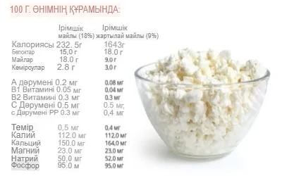 Қалың және майлы сүзбе құрамында көптеген дәрумендер мен микроэлементтер бар:
