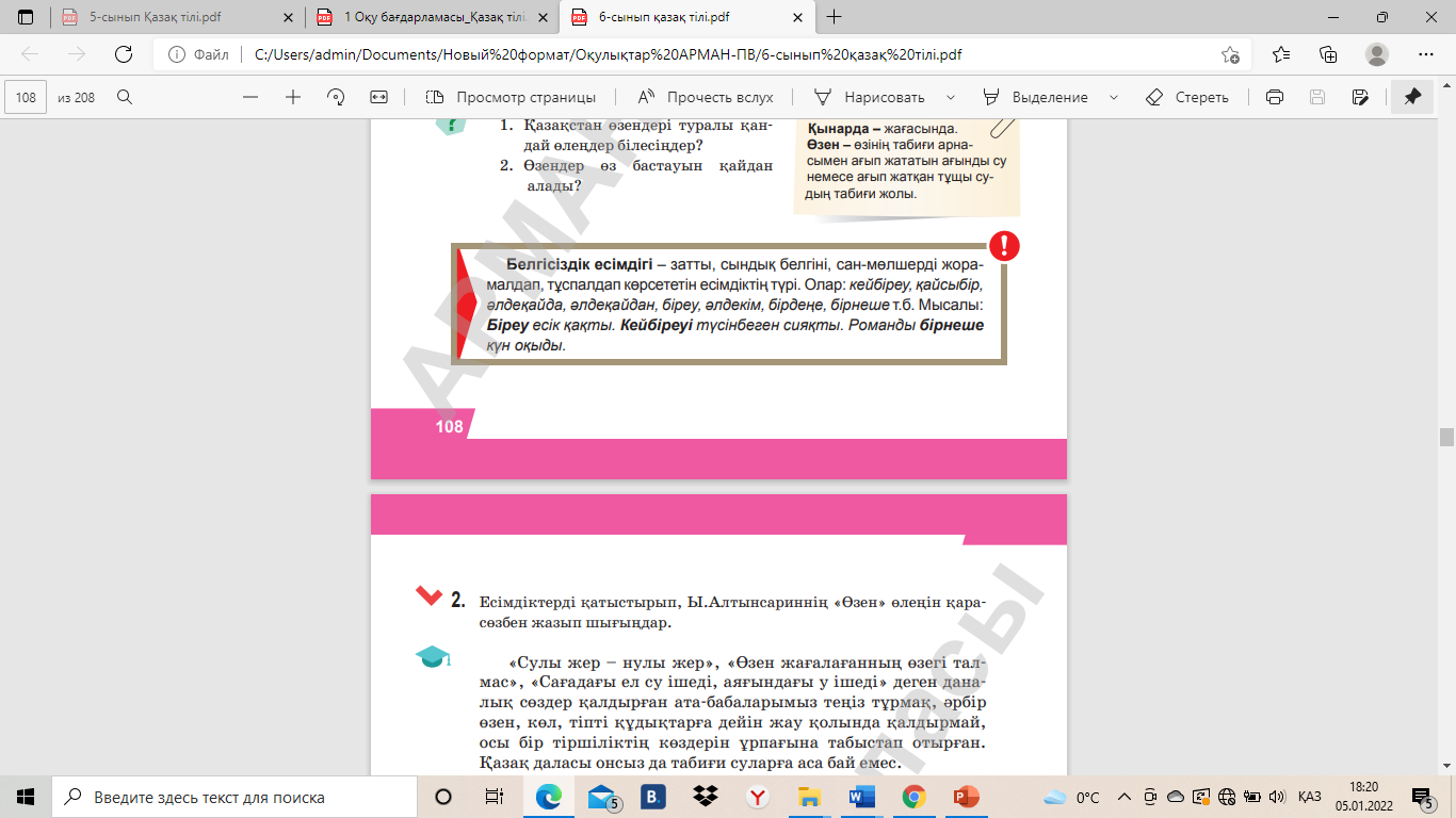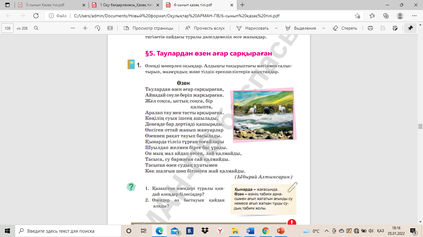 Есімдіктерді қатыстырып, Ы.Алтынсариннің «Өзен» өлеңін қарасөзбен жазып шығыңдар.