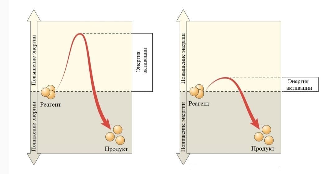 При каком ходе реакции (с катализатором/без катализатора) катализатор изменяет энергию активации.Напишите на рисунке