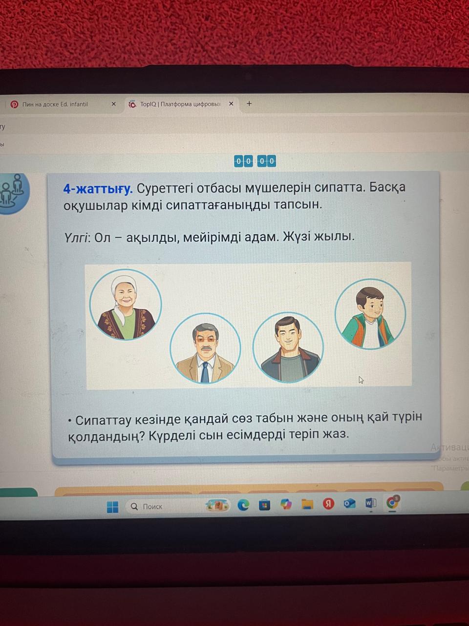 ҚБ: 1-10 балл Дескриптор: Жұмбақты шешеді-1б Сын есімдерді табады-1б |