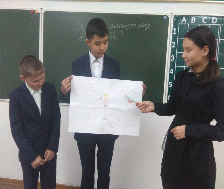 Оқушылардан осыған байланысты сенімділікпен жұмыс жасайды, бар ынтасымен оқуға беріледі, пікірлерді тыңдап, құрметтеуді, өз пікірін ашық білдіруге дағдыланады.