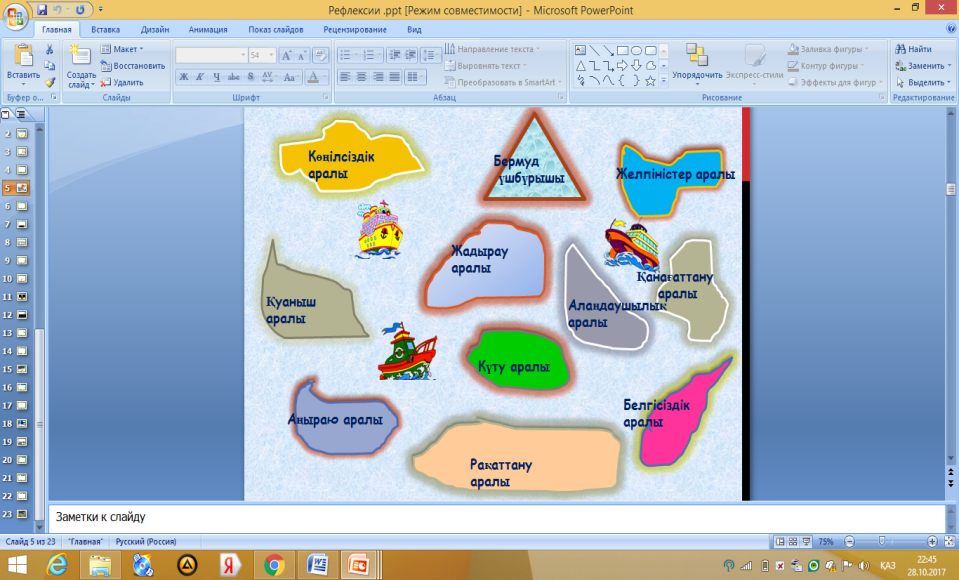 Сабақтан алған әсерлері туралы тақтадағы «Аралдар» қағазына қай жерде екендерін көрсетіп аралдарды таңдап жапсырады |