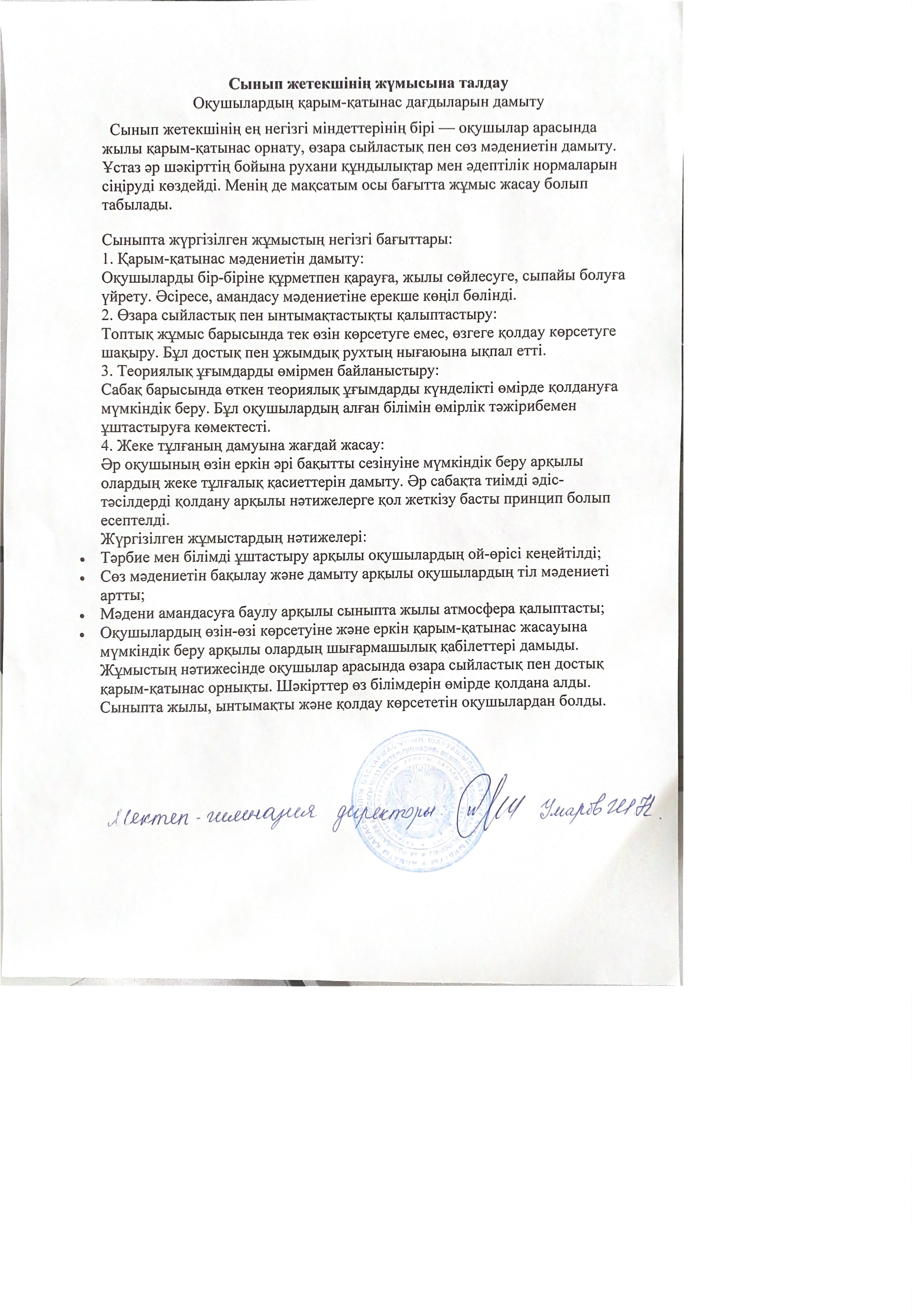 сынып жетекшіңыі жұмысын талдау