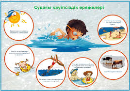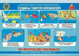 Судағы негізгі қауіпсіздік ережелері Әр қалада демалуға және шомылуға арналған арнайы жабдықталған су қоймалары бар. Ол жерде арнайы қызметтер бар. Бұл тәртіпті бақылауға, сондай-ақ адамдарды құтқаруға дайындалған адамдар. Мұнда үнемі судың сапасы тексеріледі. Көптеген су айдындарында жедел жәрдем көліктері кезекшілік етеді. Жабдықталмаған жерлерде шомылуға тыйым салынады. Сіздің жасыңызда тек ата- анаңыздың немесе басқа ересектердің қатысуымен шомылуға болады. Сіз жылы мезгілде және жылы суда жүзе аласыз. Көбінесе суға батудың себебі дененің суық суда, гипотермиясы болуы мүмкін. Егер сізде, жоғары температура болса, шомылуға болмайды. Бұл жағдайда суға түсу өте қауіпті. Жүзе білу. Егер сіз жүзе алмасаңыз, таяз жерде, жағаға жақын жерде болыңыз. Жүзгіш достарыңыздың соңынан ермеңіз. Сіз бірден жүзуді үйренбейсіз. Суда болу уақытын шектеу керек. Егер суда ұзақ уақыт жүрсеңіз, шаршағаныңызды байқамауыңыз мүмкін, ал су кез келген уақытта отыруға және демалуға болатын жер емес. Суда мұны істеу мүмкін емес. Нәтижесінде жағаға жүзіп келуге күшіңіз жетпеуі мүмкін. Судағы күштеріңіз бен әл-ауқатыңызды бақылаңыз. Судан ертерек шығып, демалып, күнге жылынғандұрыс. Шомылуға арналған жерлерде шомылу аймағын шектейтін арнайы белгілер (қалтқылар, жалаулар және т.б.) бар. Аталған шомылу аймағынан тыс жүзбеңіз. Бұл демалушылардың қауіпсіздігі үшін жасалғаны түсінікті. Суда ойнауға болмайды. Бейтаныс жерлерге сүңгуге болмайды.