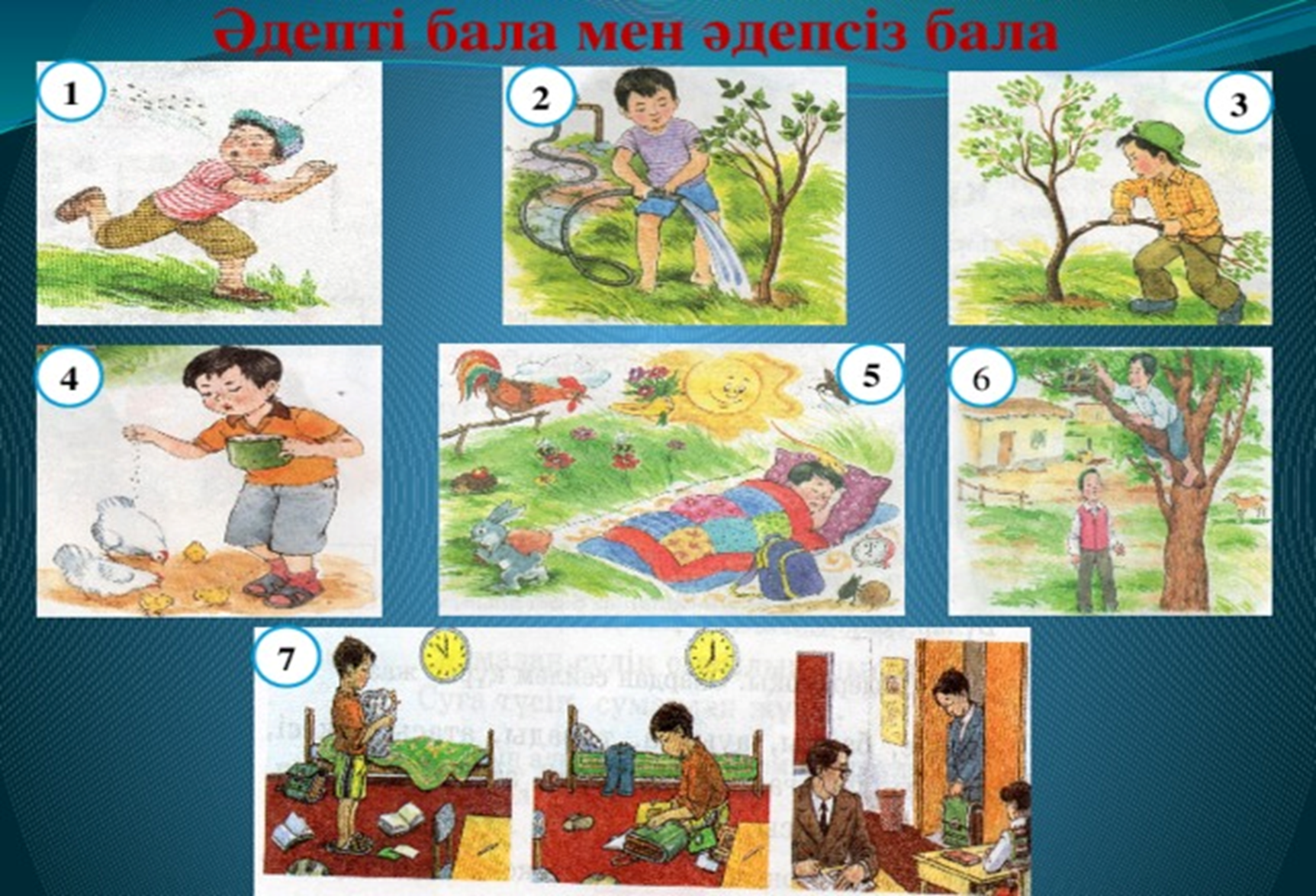 • Моральдық нормалар мен мінез-құлық ережелерін білу • Мектепте, қоғамда этикалық және құқықтық нормалар мен ережелерді сақтаудың маңыздылығын білу |