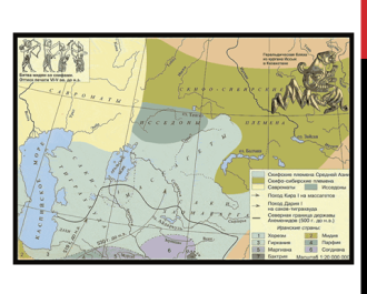 Картада тайпалық одақтардың орналасуын көрсетеді Деректер негізінде сақ, сармат тайпаларының халықаралық аренадағы орнын түсінеді |