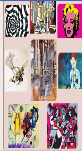 Қоршаған орта элементтерінің визуалды сипаттамасын (композиция, түс, пішін, фактура, пропорция) өзінше түсіндіреді. Шығармашылық идеяларды басқа өнер құралдары таңдап әртүрлі техникада таңдалған визуалды элементтерді таңдайды және негізделген түрде анықтайды