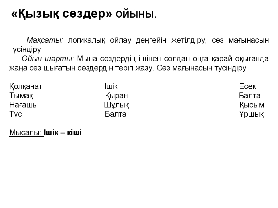Сөздік қорды кеңейту ойыны |
