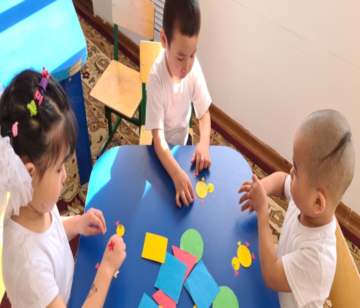 Ойын мақсаты: Пішіндерді дұрыс орналастыру арқылы балалардың ой-өрісін дамыту. Бала бойына ептілікті қалыптастыра білу.