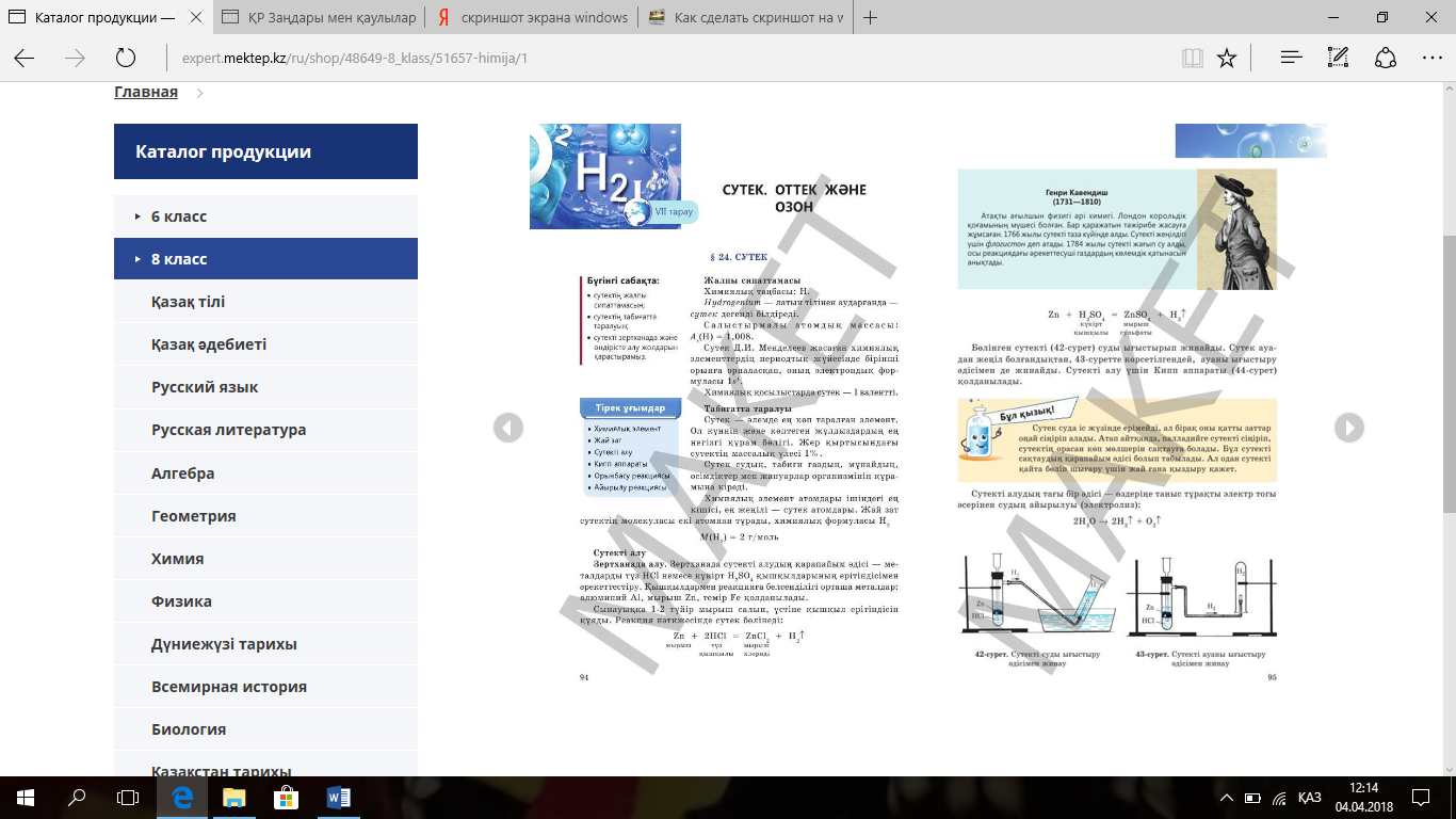 8.4.2.1 - сутекті алу және оның қасиеттері мен қолданылуын зерттеу |