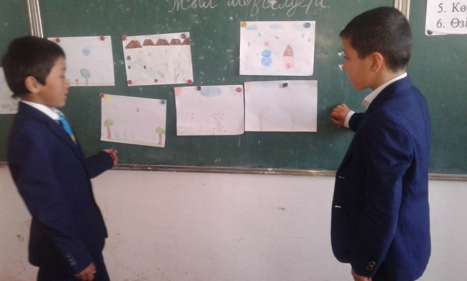 Ынтымақтастық ахуал. Шаттық шеңберін құру. Біліп айтқан сөзге құн жетпейді. Тауып айтқан сөзге шын жетпейді. Өзің білмесең білгендерден үйрен Үйренгеннен ештеңең кетпейді. Топқа біріктіру: «Жобалау» тобы, «Бақылау» тобы, «Зерттеу» тобы. Табыс критерийін, бағалау критерийін таныстыру. Үй тапсырмасын пысықтау. Әр топқа тапсырма: Табиғи құбылысты жандандыру, суреттеу. Ақ боран сөзінің мағынасын ашу. Халық ауа-райын қалай болжаған? Постер қорғау, бағалау. |