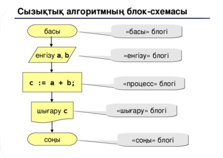 программаны құру қадамдарын пайдаланып, блок-схема түрінде сызуды