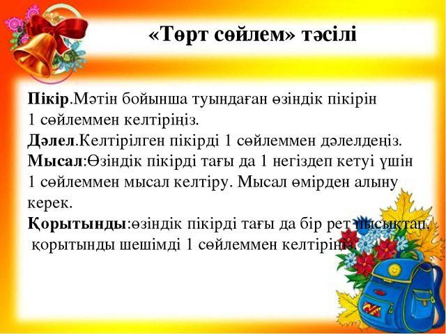 Айтылым Сөйлем құраңдар. Жазылым «Бес саусақ» тәсілі арқылы сұрақтарға жауап жазыңдар. |