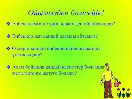 Сабақтың тақырыбы: 13. Еңбек- байлық |