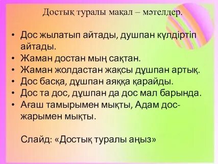 Сабақтың тақырыбы: 4. Досы көпті жау алмайды |