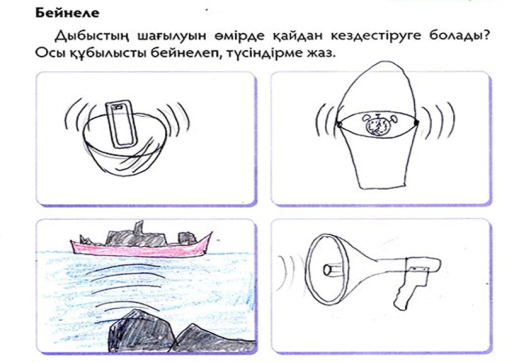 «Бейнеле» айдары Дыбыстың тез шағылатын кездерінің суреттерін салу.Оларды түсіндіру.