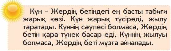 Тапсырма. критерий Табиғи жарық көздерімен танысады.. Дескриптор Суретке қарай отырып сұрақтарға жауап береді.