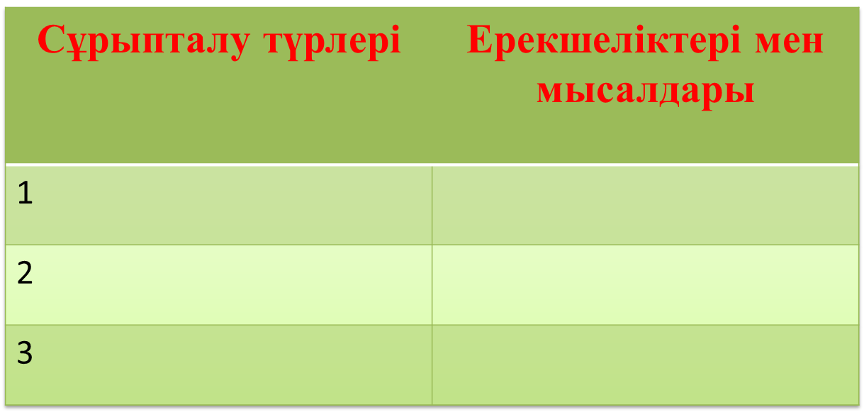 Табиғи сұрыптау түрлері туралы білімдерін