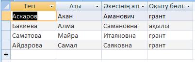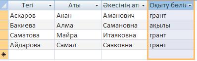 Осы қадамдарды орындағаннан соң, ОК батырмасын басқанда бізге қажет грантта оқитын студенттердің тізімі шығады: