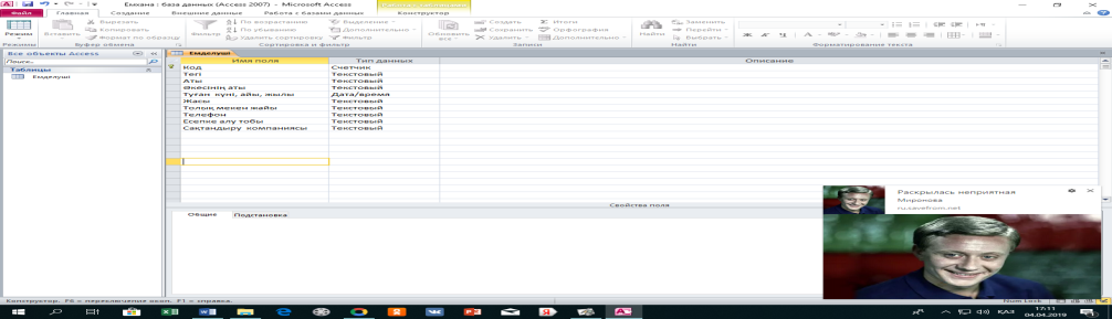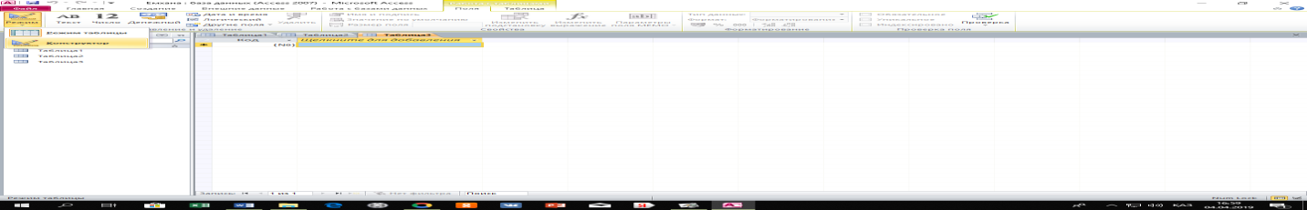 1 Тапсырма. Жаңа мәліметтер базасын құру. Бағдарламамен танысу.