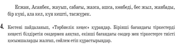 Берілген тіркестердің мағынасын түсінеді. Сөйлем ішінде сөздерді байланысу түрлеріне қарай дұрыс қолданады.
