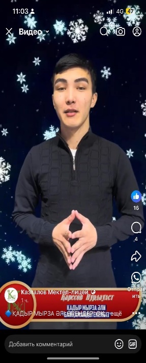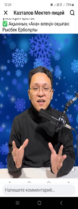 05.01.2025 ж Казталов мектеп-лицейінде қысқы каникул кезіндегі іс-шаралар жоспарына сәйкес “Отбасыммен өткен қызықты сәт” тақырыбындағы түсірілген бейнероликтер әлеуметтік желіге орналастырылды.