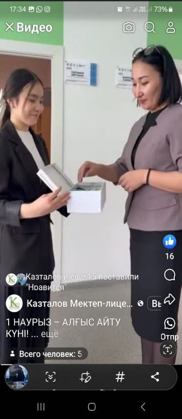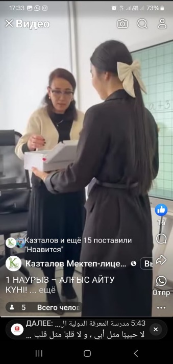 Казталов мектеп-лицейінде 1 наурыз Алғыс айту күніне 8 а сынып
