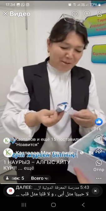 1 НАУРЫЗ – АЛҒЫС АЙТУ КҮНІне орай Казталов мектеп-лицейінде өзін-өзі басқару ұйымының ұйымдастыруымен ,