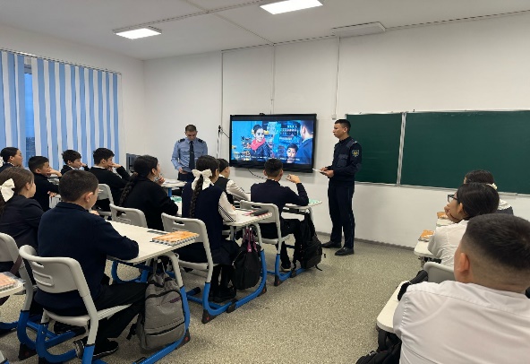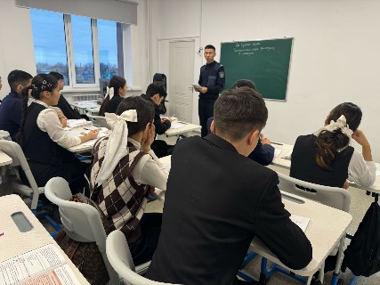 16.02.2025 ж 9-11 сынып оқушыларымен Казталов аудандық жасөспірімдер инспекторы О.Қ.Уразымбетов сыбайлас жемқорлық, қауіпсіздік шаралары туралы түсінік жұмыстарын жүргізді.