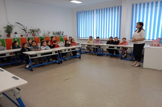 сұрақтар қойылып, оқушылар ұйымшылдықпен тапсырмаларды орындай