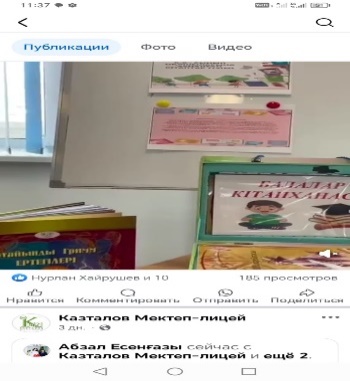 Ұйымдастырушы: мектеп кітапханашысы Мадина Ерғазықызы.
