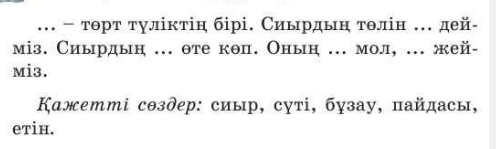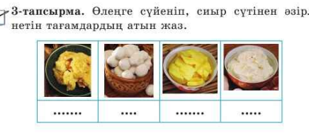 4-тапсырма Өлеңге сүйеніп, сиыр сүтінен әзірленетін тағамдардың атын жаз.